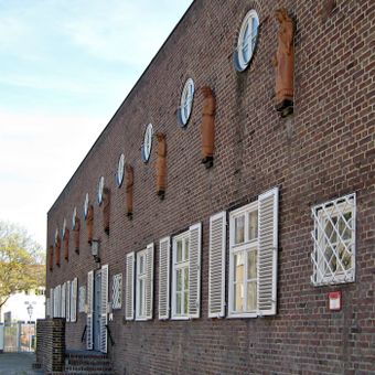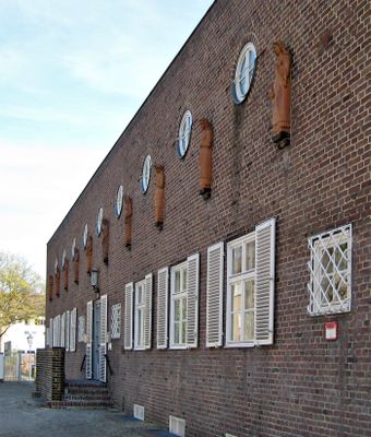 Five wise and five foolish virgins, architectural sculpture by Hermann Hosaeus on the Eduard-Willis-Haus in Berlin-Siemsstadt, Germany, consisting of 10 sculptures