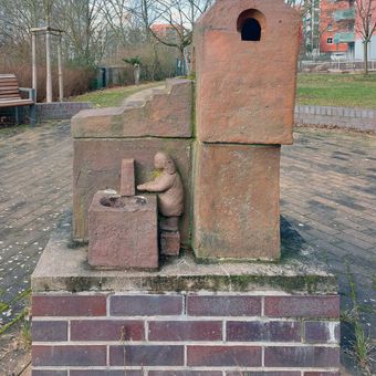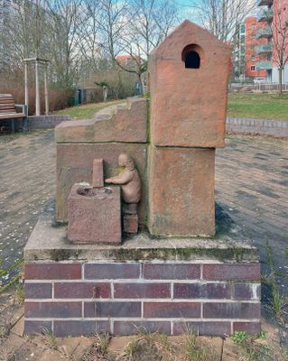 Garden sculpture with bird bath, sculpture by Ute Greiner in Berlin-Hellersdorf, Germany