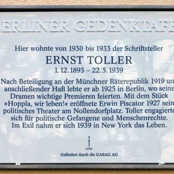 Commemorative plaque to Ernst Toller, Berlin memorial plaque