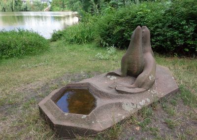 Drinking fountain with two sea lions, sculpture by Rosemarie (Romy) Henning in Berlin-Charlottenburg, Germany