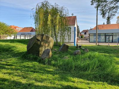 Glacial erratic rocks at Arnoldplatz, Leipzig-Sommerfeld, geological natural monument in the urban area of Leipzig: glacial erratic rocks at Arnoldplatz, district Engelsdorf/Sommerfeld