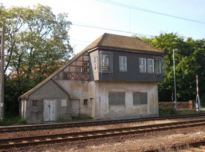Puesto de enclavamiento Mw, estación Mockrehna, puesto de enclavamiento de mando de la estación Mockrehna, tramo 6445 Halle (Saale) – Cottbus en el paso a nivel Schildauer Straße