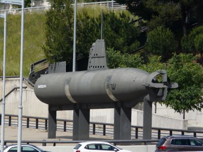 El submarí Barcelona, Monumento submarino militar en CosmoCaixa, Barcelona, España.