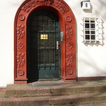 Door decoration, architectural sculpture at the residential building Harriesstraße 8-10 in Berlin-Siemenstadt, Germany