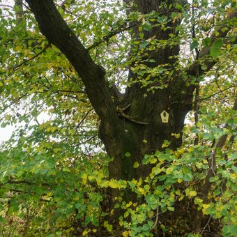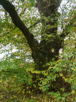 Two Tilia trees near Birkenhof, natural monument in Wurzen Municipality, Saxony; two tilia trees near Birkenhof