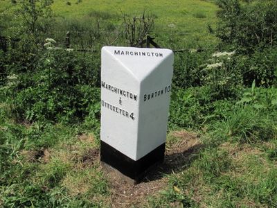 Milepost At Ngr Sk 13113009, milestone in Marchington, East Staffordshire, Staffordshire, UK
