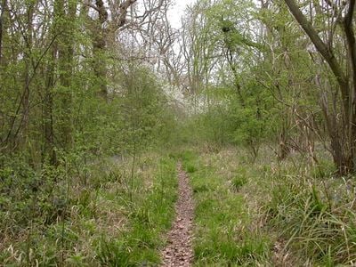 El bosque de 21.6 hectáreas presenta secciones húmedas con robles pedunculados y fresnos que crecen junto a campanillas azules en suelo arcilloso.