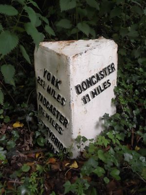Milestone, Doncaster Road, Badsworth, between New Road and railway bridge