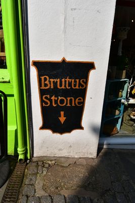 Brutus Stone To Front Of Nos 51/53, architectural structure in Totnes, South Hams, Devon, UK