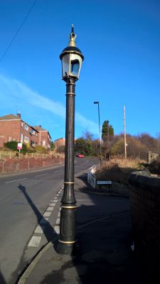 Sewer Gas Lamp at Junction with Tipton Lane, sewer gas destructor lamp in Sheffield, South Yorkshire, UK