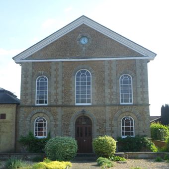 United Reformed Church and Attached Graveyard Wall with Gatepiers and Railings, architectural structure in Elstead, Waverley, Surrey, UK