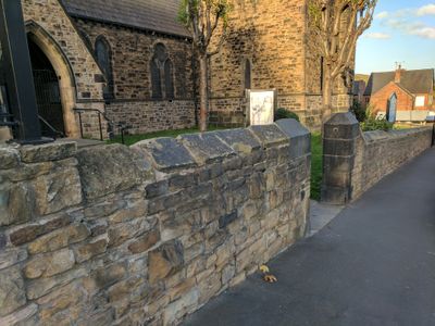 Boundary Walls And Gate Piers To Church Of St Thomas, wall in Sheffield, South Yorkshire, UK