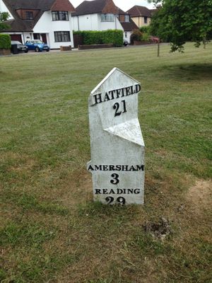 Milestone, Amersham Road; opp. the Ivy House PH, close to Pollards Wood Golf Course, North Harewood Down House