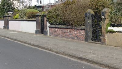 Gatepiers and wall of Beach Lawn, Waterloo, grade II listed wall and gate piers, Waterloo, Sefton, Merseyside