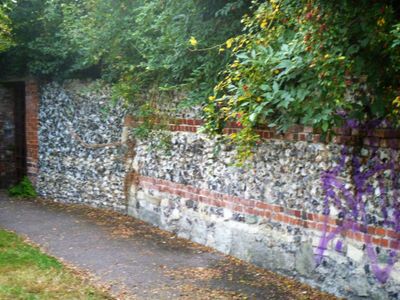 Wall To The North West Of Greyfriars Monastery, wall in Canterbury, Kent, UK