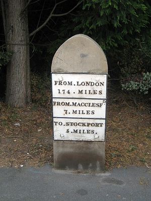 Milepost, Wellington Road, Hazel Grove, just N of studios