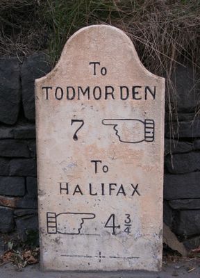 Milestone, W of Halifax jct Newlands Road/Winterburn Lane/Butts Green Lane/Abbey Lane/Workhouse Lane