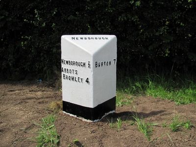 Milepost At Ngr Sk 14312517, milestone in Newborough, East Staffordshire, Staffordshire, UK