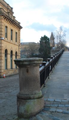 Railings And Piers To Front Of Saltaire Mills, guard rail in Bradford, West Yorkshire, UK