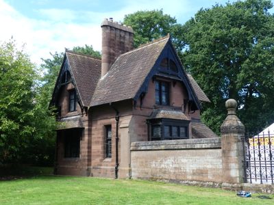 Garden Lodge, yard walls and attached storeshed and domestic offices, Grade II listed house in the grounds of Eaton Hall, Eaton and Eccleston, Cheshire, UK