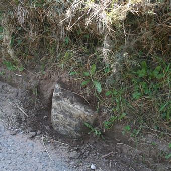 Milestone, SE corner of a wood, between Woodbury and cross roads on common