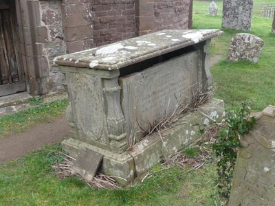 William Price Memorial approximately 2 meters south of chancel of Church of St Mary and St David, Grade II listed chest tomb in Kilpeck, County of Herefordshire, UK