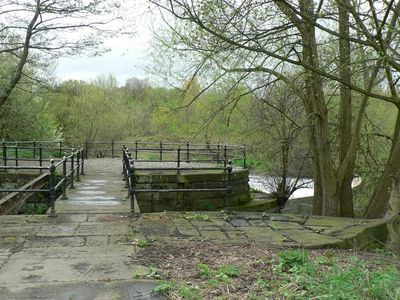 Weir And Sluice Gates At Ngr 2658 3497 Approximately 450 Metres North West Of Burley Mills, weir in Leeds, West Yorkshire, UK