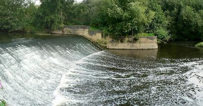 Weir On River Aire At Ngr 2655 3488, weir in Leeds, West Yorkshire, UK