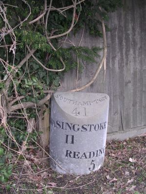 Milestone, Basingstoke Road; Three Mile Cross, on old road that is now a cul de sac off the traffic island