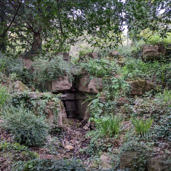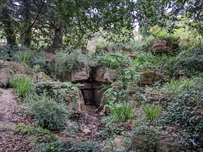 Pulhamite Waterfall In Bromley Palace Park, architectural structure in Bromley, Greater London, UK