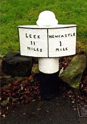 Milepost Sw Of 'The Polite Vicar' Public House, milestone in Newcastle-under-Lyme, Staffordshire, UK