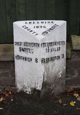 Milepost, Pewterspear, half mile N of Stretton Cross Roads, milepost in Stretton, Warrington, Cheshire, England, UK