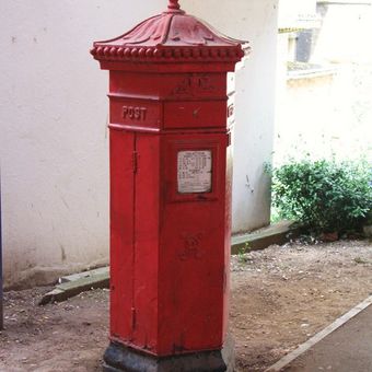 Pillar Box In Rear Courtyard Of The London Hospital, pillar box in Tower Hamlets, Greater London, UK