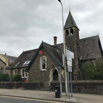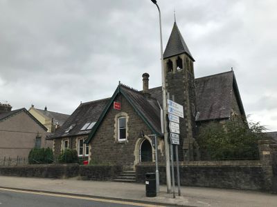 Former Priory Street School with walls and railings, Grade II listed building in Carmarthenshire. Situated just E of St John's church, on junction with Penuel Street