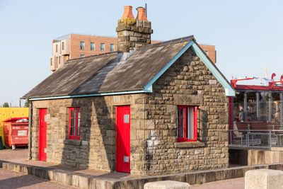 Workmen's Hut at Sea Lock to Roath Basin, Grade II listed building in City and County of Cardiff. On SE side and parallel to lock, approx. 40 metres from outer lock gate
