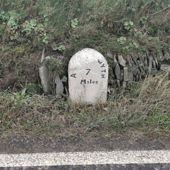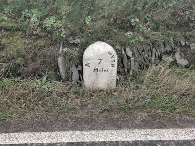 Milestone on A487, Grade II listed building in Ceredigion. Situated on W side just opposite turning to Llanddeiniol