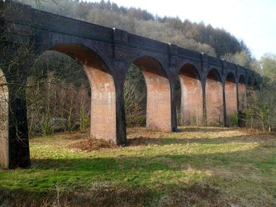 Pontrhydyfen Viaduct, Grade II listed building in Neath Port Talbot County Borough. Long viaduct spanning the Afan valley where the river curves round towards the S, and the road which leads from Cwmavon to Pontrhydyfen