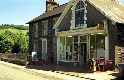 Shop in Capel Bangor adjoining Exchange House, Grade II listed building in Ceredigion. Situated in village, the second building after the garage on S side