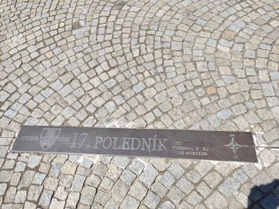 17th Meridian in Vyškov, mosazné označení 17. poledníku na Masarykově náměstí, Vyškov, Česká republika