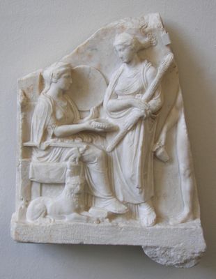 Weihrelief an Kybele, attic dedicatory relief for the Asia Minor goddess Kybele (4th century B.C.)