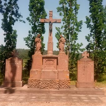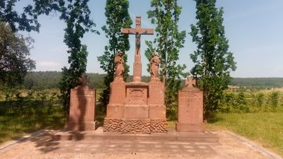 Kriegerdenkmal Robern, An die Gefallenen und Vermissten Roberner beider Weltkriege erinnerndes Kriegerdenkmal auf dem Roberner Friedhof