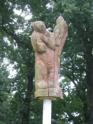 Bear and eagle, monument by Ingo Wellmann on the former inner German border between the Spandau district of Berlin and Falkensee (Brandenburg), Germany