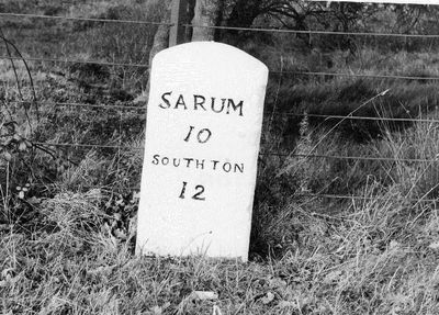 Milepost, Southampton Road, Plaitford; 100m E The Shoe Inn next to entrance "Forest Acre"