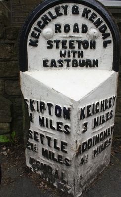 Milestone To Front Of Number 10, milestone in Steeton with Eastburn, Bradford, West Yorkshire, UK