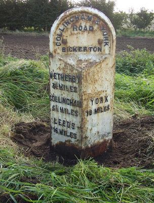 Mile Post Approximately 350 Metres East Of Turning To Bickerton, milestone in Bilton-in-Ainsty with Bickerton, Harrogate, North Yorkshire, UK