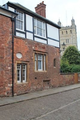 Bomb damaged remains of St Catherine's Almshouses and chapel and adjacent canon's house, 140m north of the Cathedral
