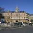 El edificio de estilo Renacimiento francés presenta trabajos en piedra elaborados, múltiples torretas y una fachada principal curva hacia Bourne Avenue.
