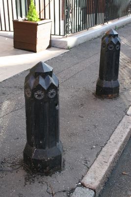 Pair Of Bollards Outside Tower House, bollard in Tower Hamlets, Greater London, UK