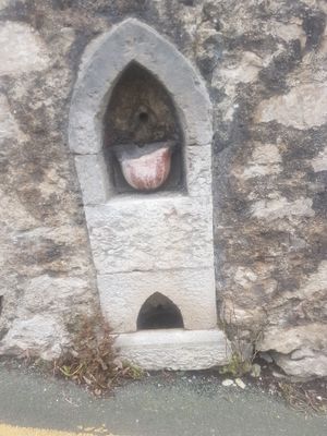 Retaining wall to garden to rear of No13, including drinking fountain, Grade II listed building in Conwy County Borough. On NE side of Old Road, running S from junction with Tabor Hill