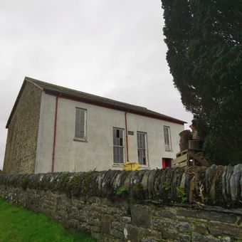 Capel Cynnon including vestry, grade II listed building in Ceredigion, situated facing W on the junction of minor roads 1km W of Llanfihangel-y-Creuddyn